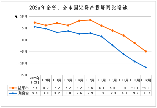 2025年,我市固定资产投资同比下降4.9%,降幅低于全省平均水平。其中,项目投资下降3.5%,房地产开发投资下降24.0%。