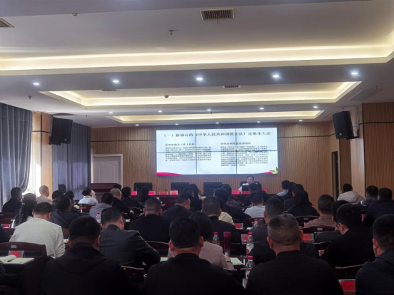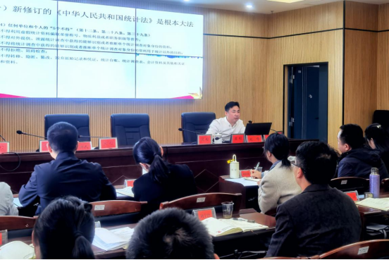 刘峰从新修改《统计法》的重要意义、主要内容、法律底线和法律责任等方面进行阐述,剖析相关统计违纪违法典型案例。结合省市基本动态、深入分析桃江县经济运行现状等行情。